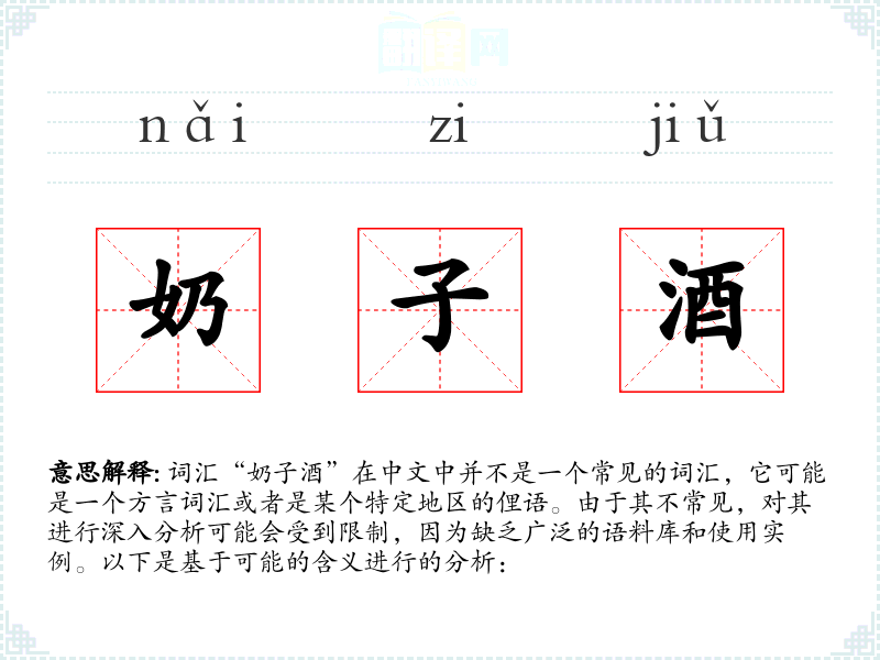 同义词可能包括“奶酒”、“奶味酒”等,这些词汇更加常见,且含义相近。反义词可能没有直接对应的词汇,因为“奶子酒”的特殊性。