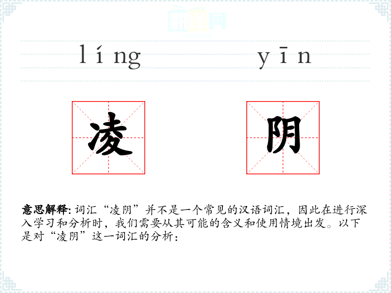 词汇“凌阴”并不是一个常见的汉语词汇,因此在进行深入学习和分析时,我们需要从其可能的含义和使用情境出发。以下是对“凌阴”这一词汇的分析: