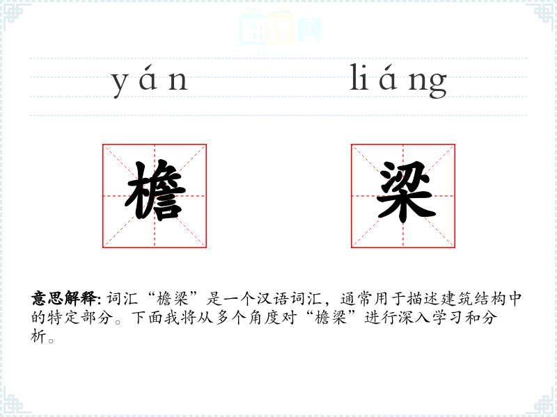 词汇“檐梁”是一个汉语词汇,通常用于描述建筑结构中的特定部分。下面我将从多个角度对“檐梁”进行深入学*和分析。