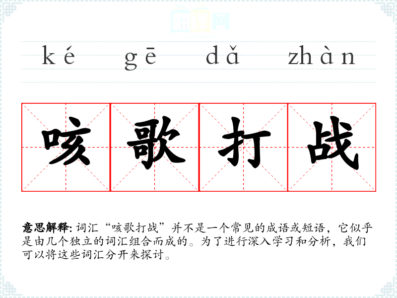 词汇“咳歌打战”并不是一个常见的成语或短语,它似乎是由几个独立的词汇组合而成的。为了进行深入学习和分析,我们可以将这些词汇分开来探讨。