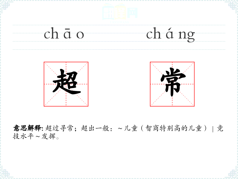 超过寻常;超出一般:~儿童(智商特别高的儿童)|竞技水平~发挥。