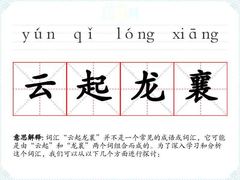 词汇“云起龙襄”并不是一个常见的成语或词汇,它可能是由“云起”和“龙襄”两个词组合而成的。为了深入学*和分析这个词汇,我们可以从以下几个方面进行探讨:
