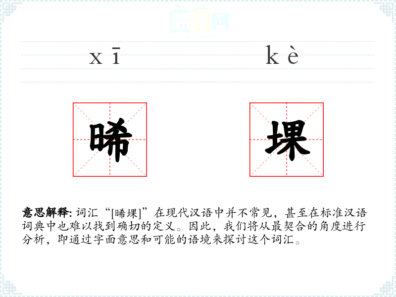词汇“[晞堁]”在现代汉语中并不常见,甚至在标准汉语词典中也难以找到确切的定义。因此,我们将从最契合的角度进行分析,即通过字面意思和可能的语境来探讨这个词汇。