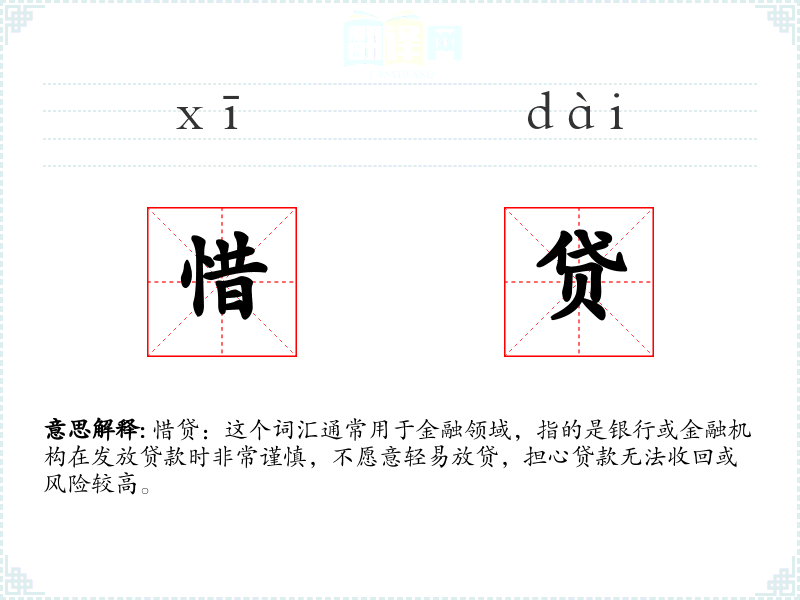惜贷:这个词汇通常用于金融领域,指的是银行或金融机构在发放贷款时非常谨慎,不愿意轻易放贷,担心贷款无法收回或风险较高。