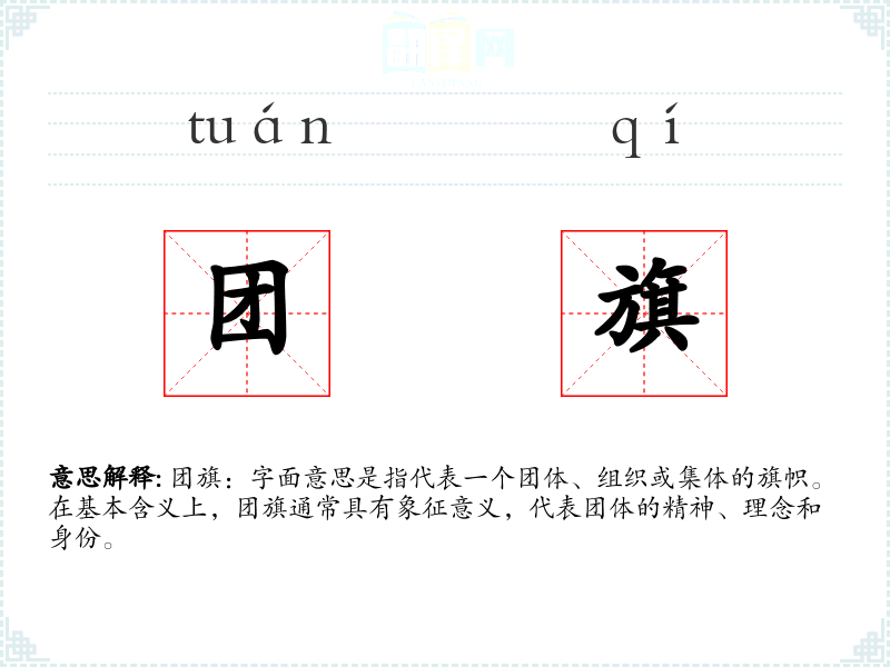 - 反义词:个人旗、私人旗(这些词汇不太常见,因为团旗强调的是集体而非个人)