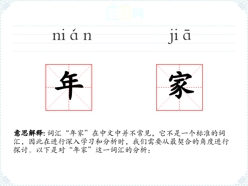 词汇“年家”在中文中并不常见,它不是一个标准的词汇,因此在进行深入学习和分析时,我们需要从最契合的角度进行探讨。以下是对“年家”这一词汇的分析: