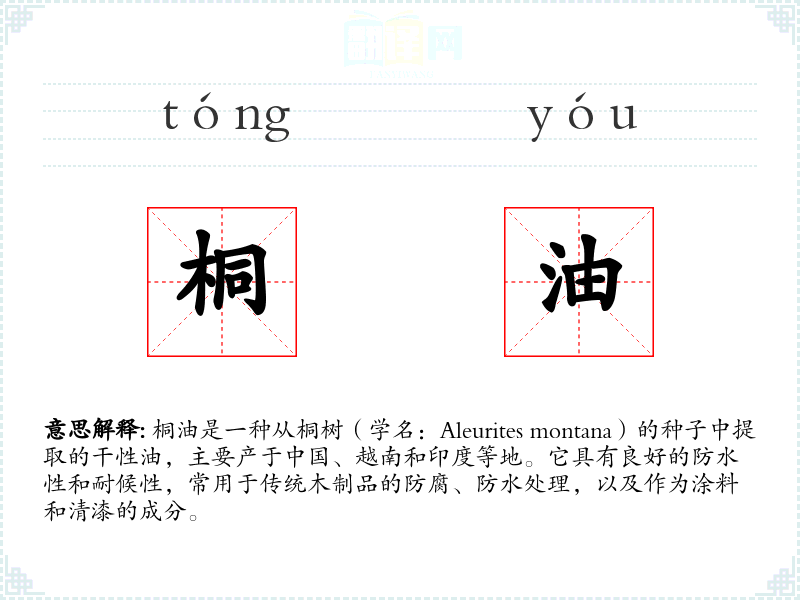 "桐油"的意思解释、桐油是什么意思由翻译网汉语词典查词提供。