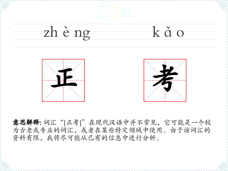 词汇“[正考]”在现代汉语中并不常见,它可能是一个较为古老或专业的词汇,或者在某些特定领域中使用。由于该词汇的资料有限,我将尽可能从已有的信息中进行分析。