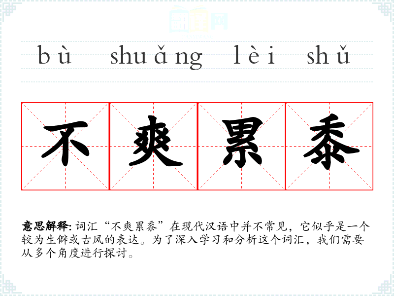 词汇“不爽累黍”在现代汉语中并不常见,它似乎是一个较为生僻或古风的表达。为了深入学习和分析这个词汇,我们需要从多个角度进行探讨。