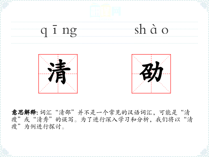 词汇“清邵”并不是一个常见的汉语词汇,可能是“清瘦”或“清秀”的误写。为了进行深入学*和分析,我们将以“清瘦”为例进行探讨。