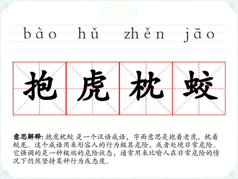 - bào hǔ zhěn jāo抱虎枕蛟