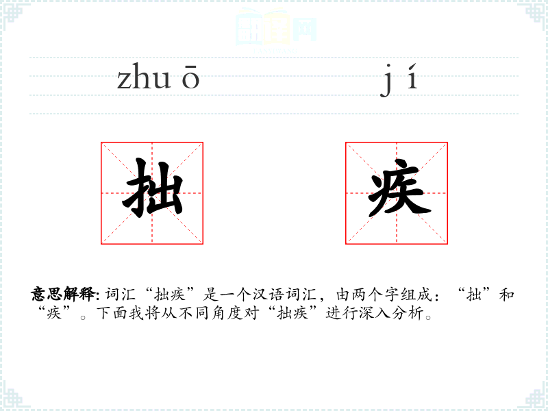 词汇“拙疾”是一个汉语词汇,由两个字组成:“拙”和“疾”。下面我将从不同角度对“拙疾”进行深入分析。