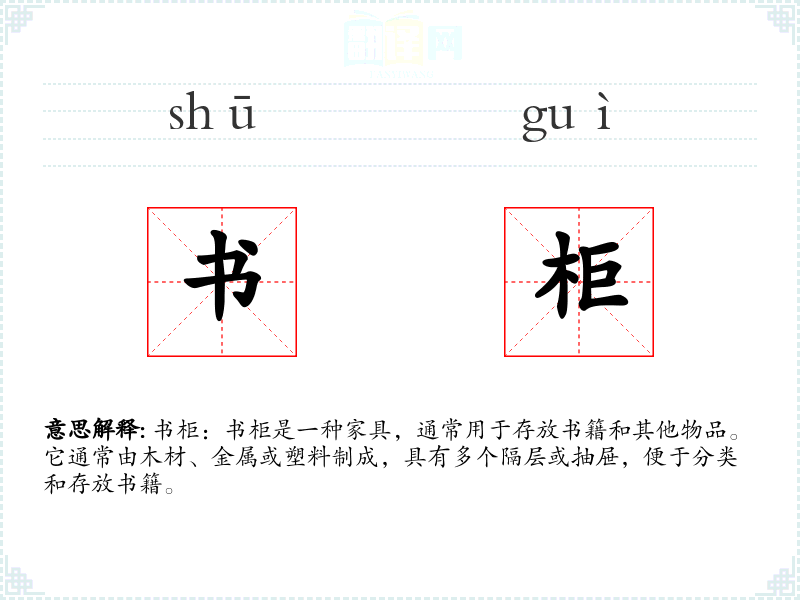 "书柜"的意思解释、书柜是什么意思由翻译网汉语词典查词提供。