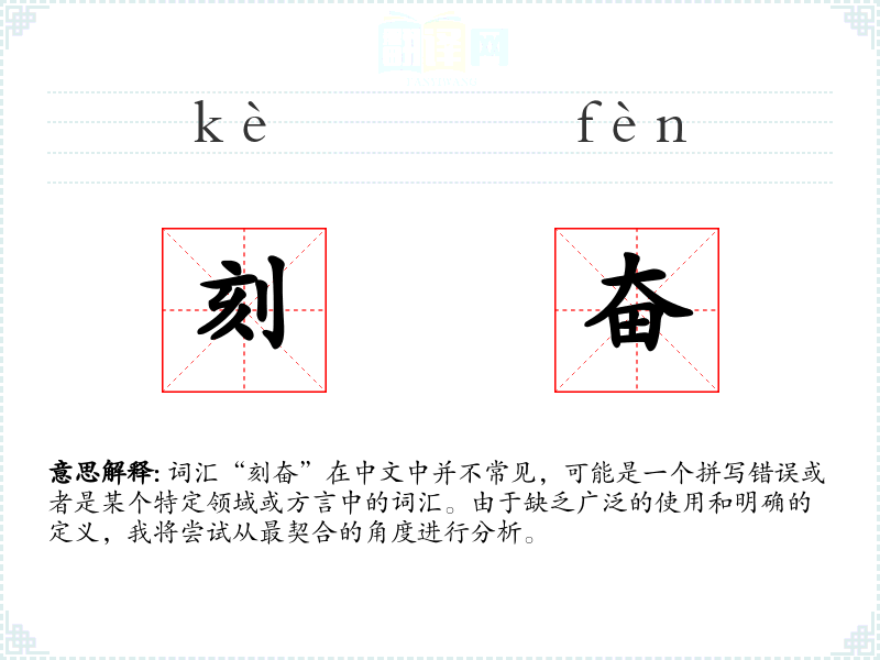 词汇“刻奋”在中文中并不常见,可能是一个拼写错误或者是某个特定领域或方言中的词汇。由于缺乏广泛的使用和明确的定义,我将尝试从最契合的角度进行分析。