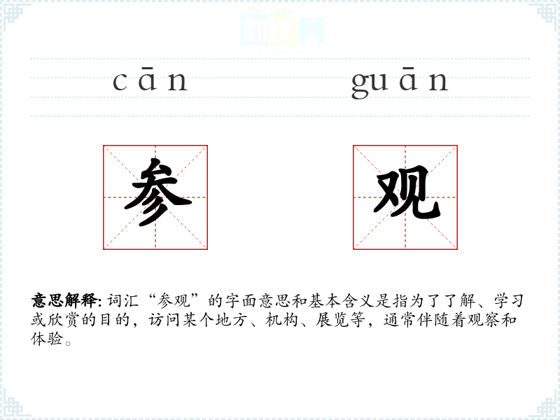 "参观"的意思解释、参观是什么意思由翻译网汉语词典查词提供。