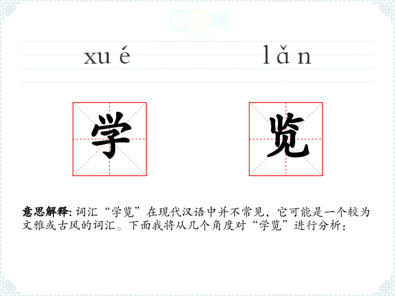 词汇“学览”在现代汉语中并不常见,它可能是一个较为文雅或古风的词汇。下面我将从几个角度对“学览”进行分析: