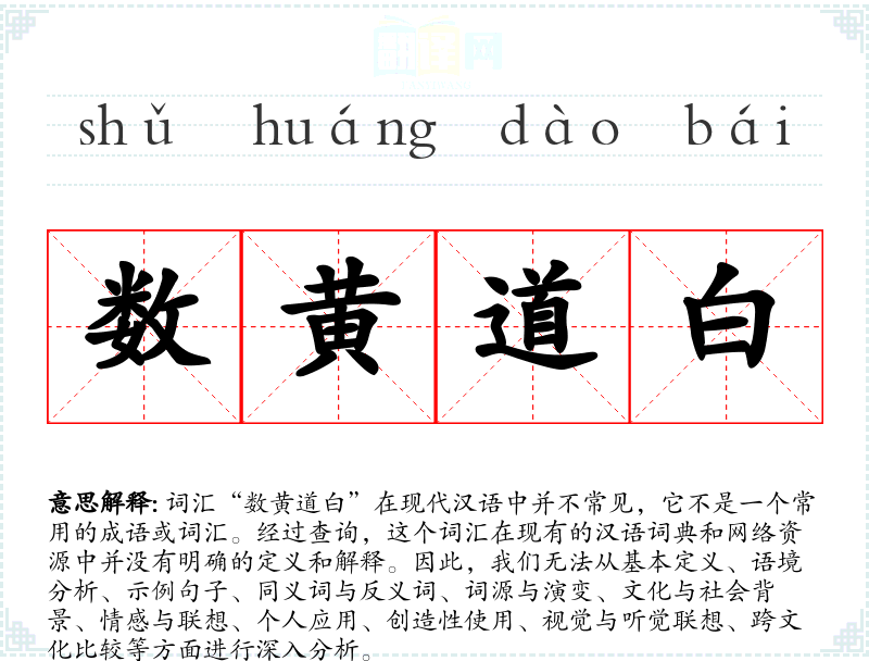 由于“数黄道白”不是一个已知的词汇或成语,我们无法提供上述各个方面的详细分析。如果这是一个特定领域或方言中的词汇,可能需要更专业的资料或当地人的解释才能理解其含义和用法。
