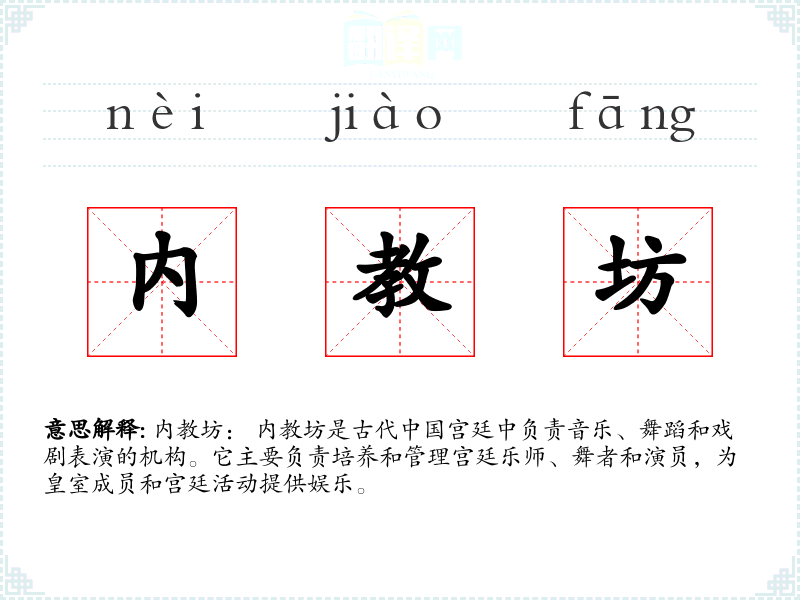 "内教坊"的意思解释、内教坊是什么意思由翻译网汉语词典查词提供。