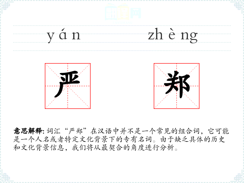 “严郑”这个词汇的分析表明,它可能是一个特定文化或个人背景下的专有名词。在语言学习和表达中,了解词汇的具体背景和语境是非常重要的。对于不常见的词汇,深入了解其背后的文化和历史意义,有助于丰富语言知识和表达能力。