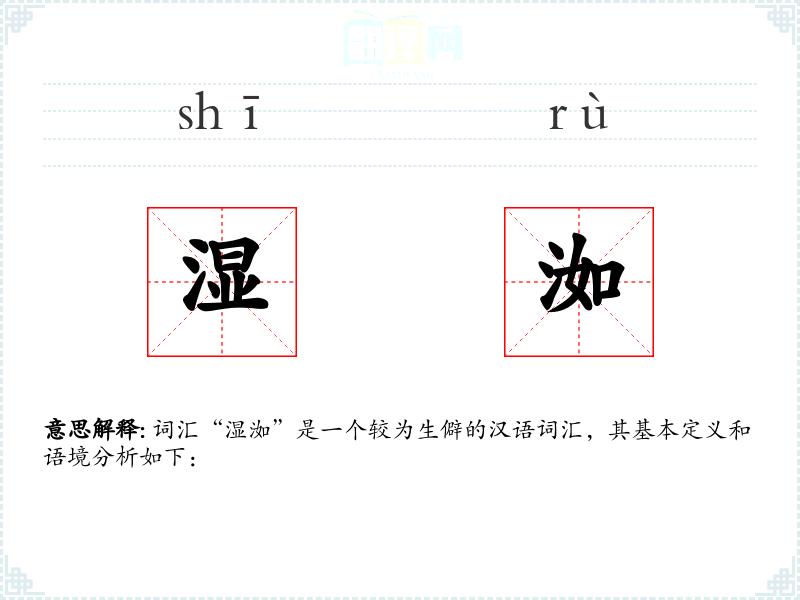 词汇“湿洳”是一个较为生僻的汉语词汇,其基本定义和语境分析如下: