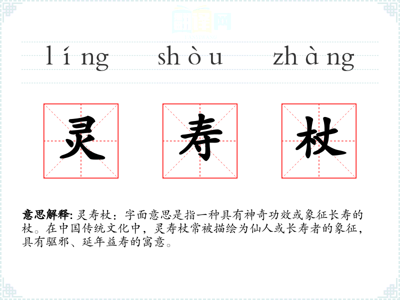 同义词:仙杖、长寿杖、神杖 反义词:短命杖(比喻意义,非实际词汇)
