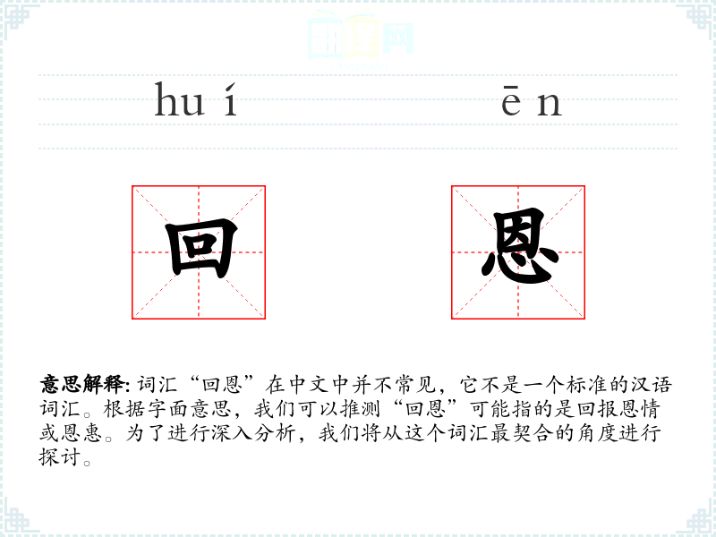 词汇“回恩”在中文中并不常见,它不是一个标准的汉语词汇。根据字面意思,我们可以推测“回恩”可能指的是回报恩情或恩惠。为了进行深入分析,我们将从这个词汇最契合的角度进行探讨。