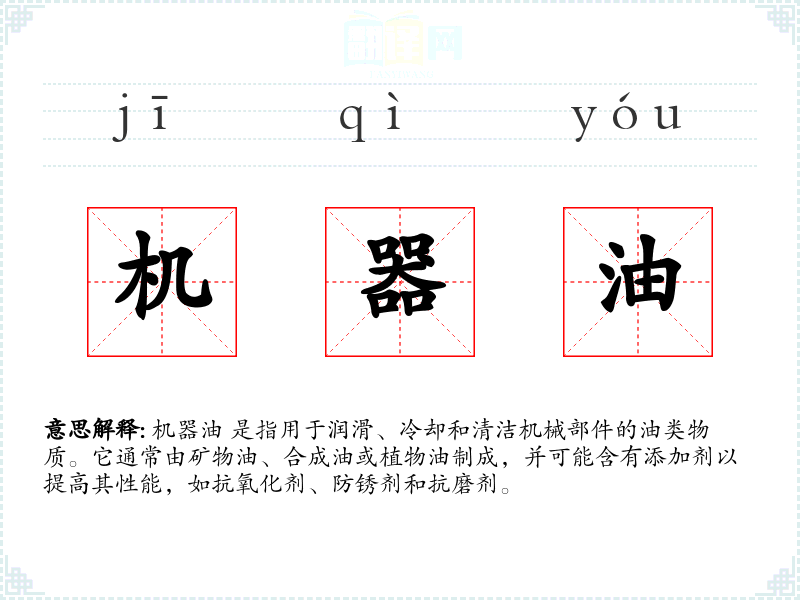 "机器油"的意思解释、机器油是什么意思由翻译网汉语词典查词提供。
