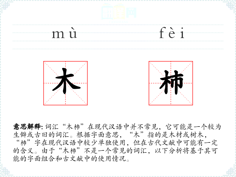 词汇“木杮”在现代汉语中并不常见,它可能是一个较为生僻或古旧的词汇。根据字面意思,“木”指的是木材或树木,“杮”字在现代汉语中较少单独使用,但在古代文献中可能有一定的含义。由于“木杮”不是一个常见的词汇,以下分析将基于其可能的字面组合和古文献中的使用情况。