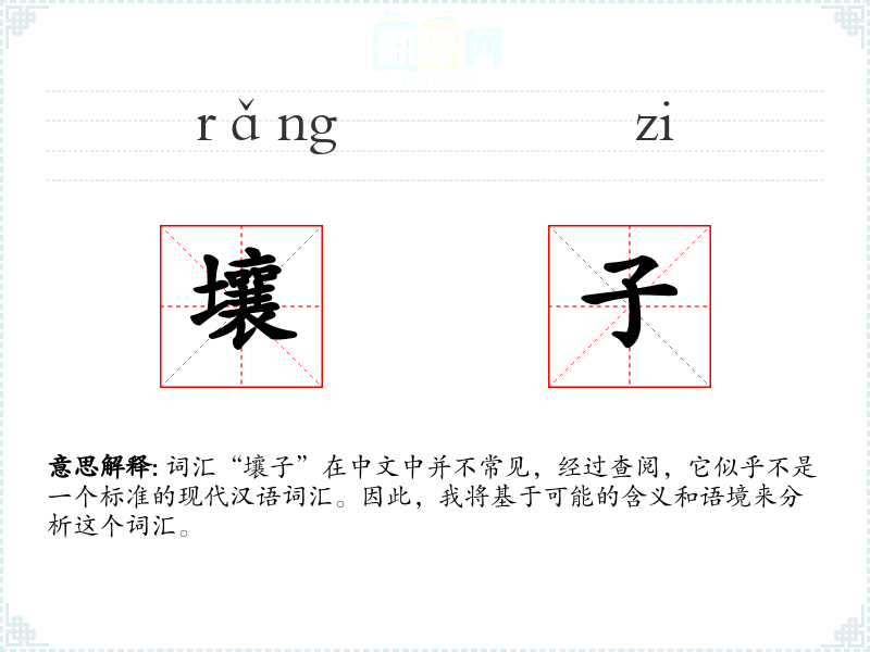 由于“壤子”不是一个标准词汇,它在不同语境下的使用非常有限。在古代文献或方言中可能存在,但在现代标准汉语中几乎不使用。