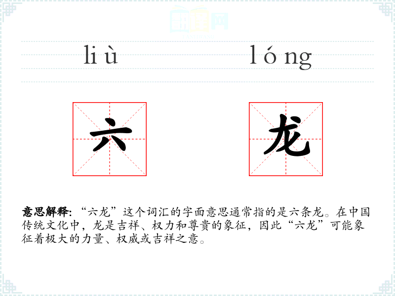 - 反义词:由于“六龙”具有特定的文化象征意义,通常没有直接的反义词。