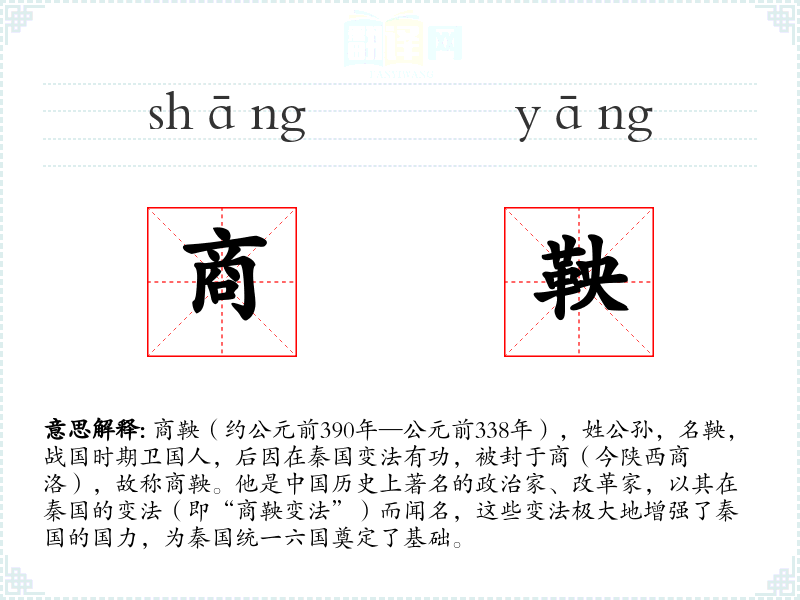- 口语:在日常对话中,商鞅的名字常被用来比喻那些推行严厉政策或改革的人。