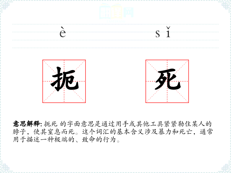 - 专业领域:在法医学或犯罪学中,“扼死”是一个专业术语,用于描述一种特定的死亡方式。