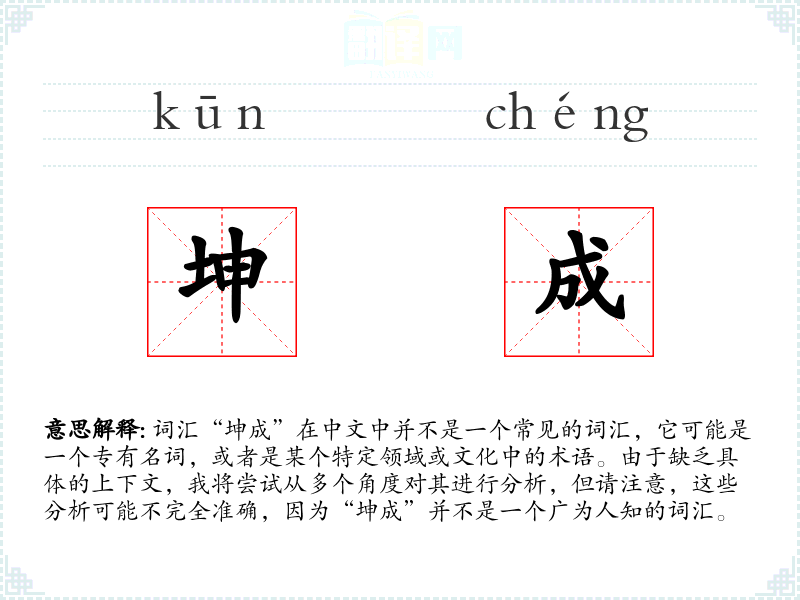 由于“坤成”不是一个常见的词汇,它在不同语言或文化中的对应词汇及其使用情况可能不适用。
