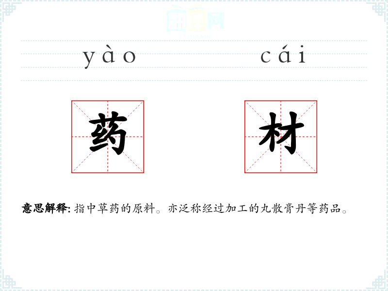 药材的分字解释
