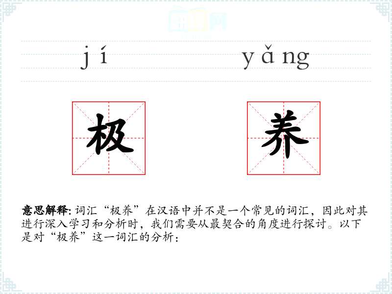 词汇“极养”在汉语中并不是一个常见的词汇,因此对其进行深入学习和分析时,我们需要从最契合的角度进行探讨。以下是对“极养”这一词汇的分析: