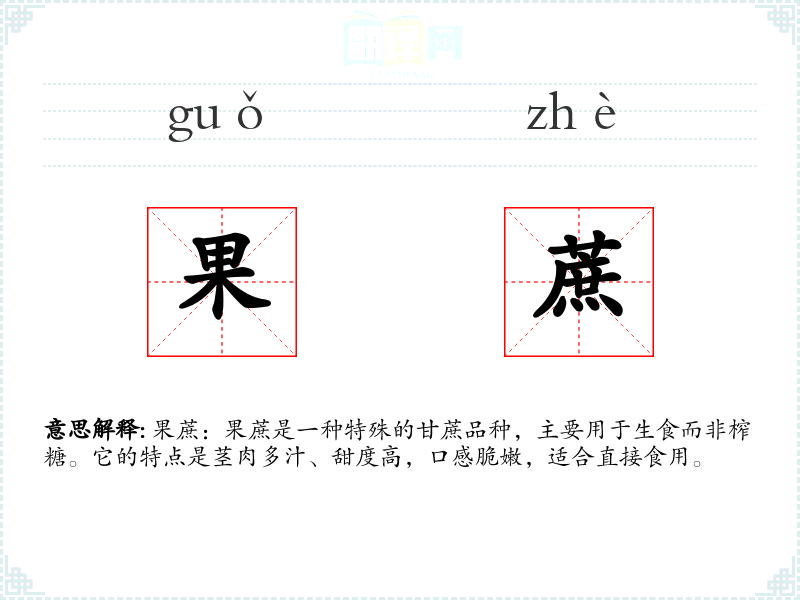 "果蔗"的意思解释、果蔗是什么意思由翻译网汉语词典查词提供。