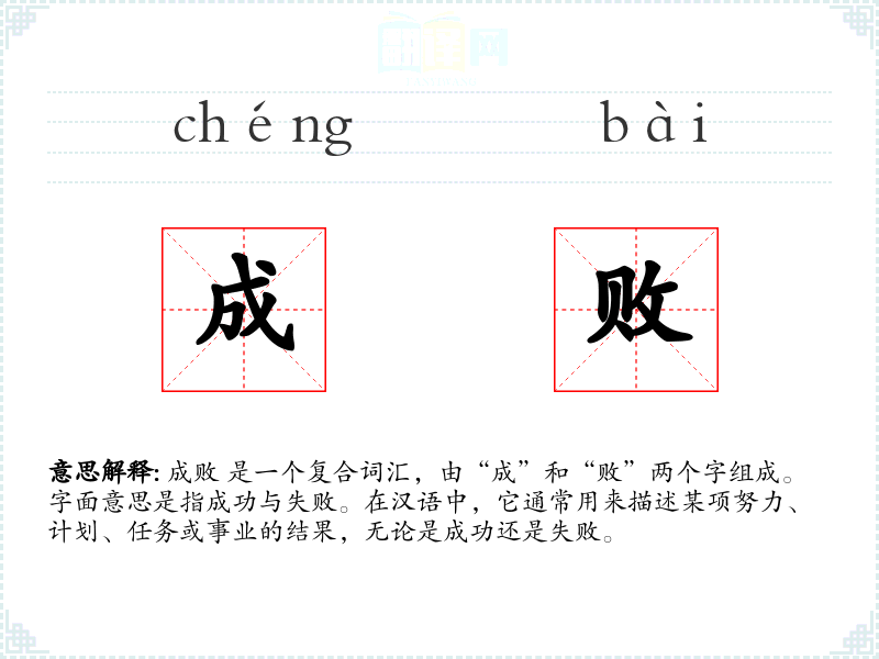 "成败"的意思解释、成败是什么意思由翻译网汉语词典查词提供。