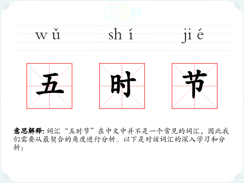 词汇“五时节”在中文中并不是一个常见的词汇,因此我们需要从最契合的角度进行分析。以下是对该词汇的深入学习和分析: