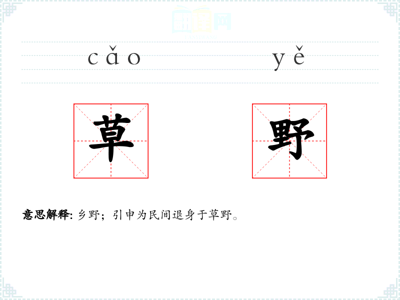乡野;引申为民间退身于草野。