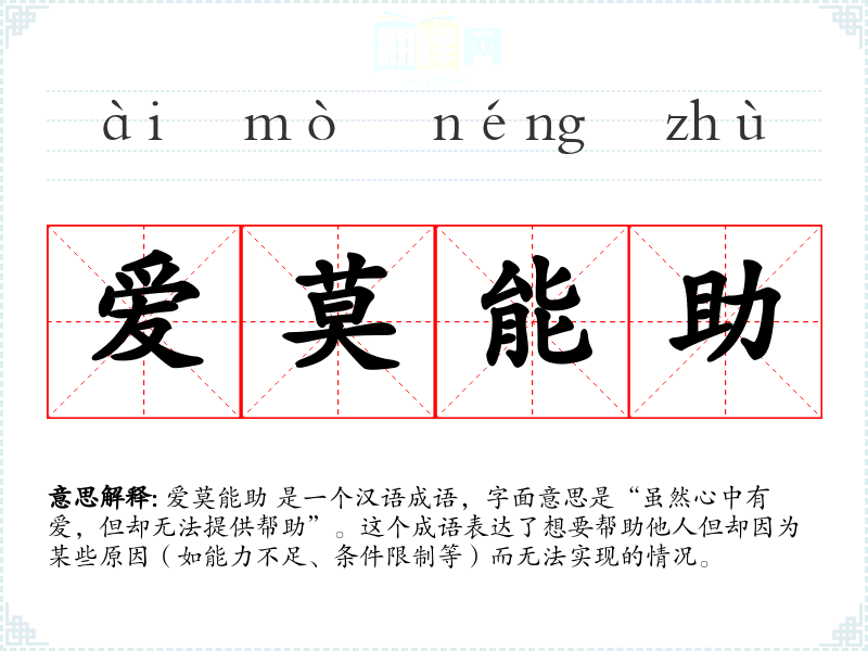 "爱莫能助"的意思解释、爱莫能助是什么意思由翻译网汉语词典查词提供。