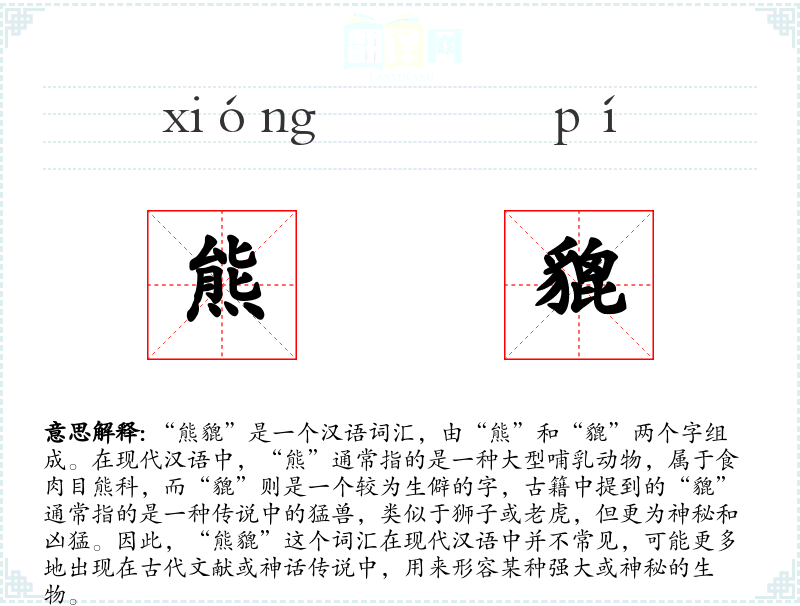 “熊貔”这个词汇的词源较为复杂,其中“熊”字源于古代对熊这种动物的称呼,而“貔”字则可能源于古代对某种神秘猛兽的称呼。随着时间的推移,“貔”这个字在现代汉语中已经很少使用,因此“熊貔”这个词汇也逐渐变得生僻。