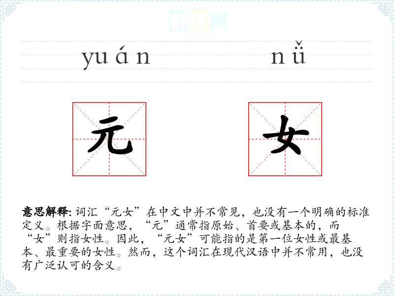 - 反义词:无明显反义词,因为“元女”不是一个常用词汇。