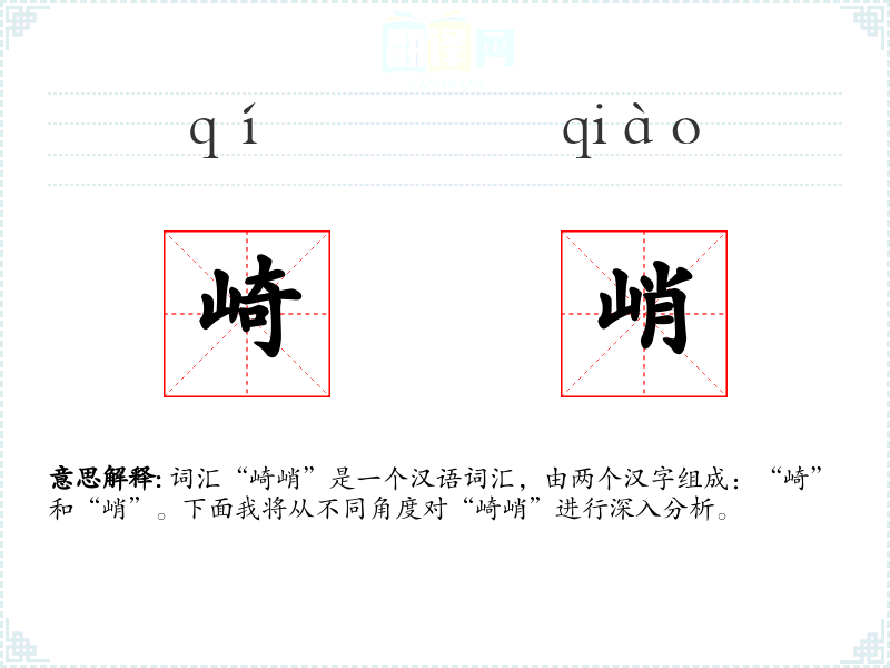 词汇“崎峭”是一个汉语词汇,由两个汉字组成:“崎”和“峭”。下面我将从不同角度对“崎峭”进行深入分析。