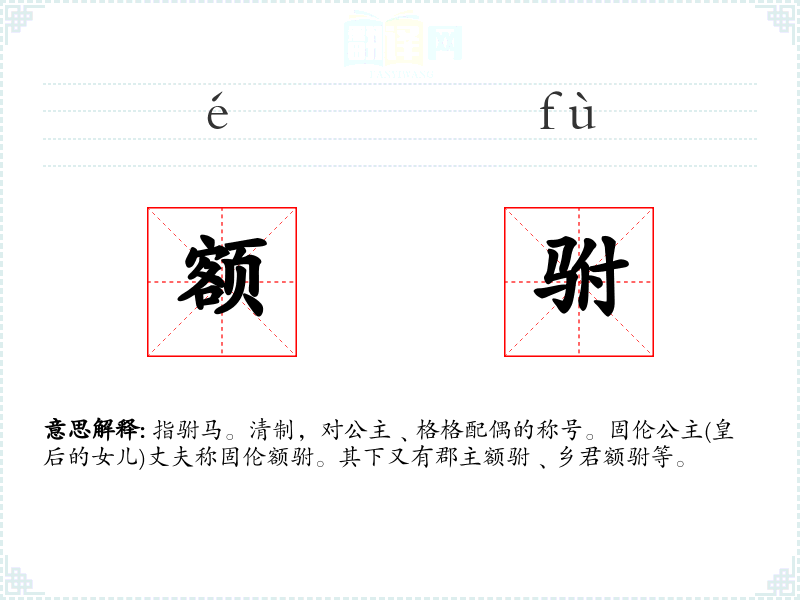 指驸马。清制,对公主﹑格格配偶的称号。固伦公主(皇后的女儿)丈夫称固伦额驸。其下又有郡主额驸﹑乡君额驸等。
