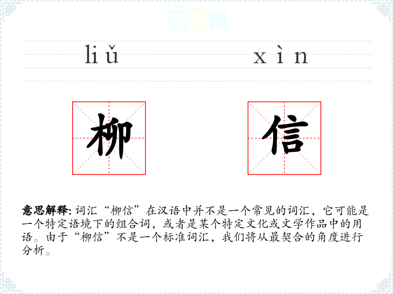 由于“柳信”不是一个标准词汇,我们无法探讨其词源和历史演变。它可能是某个作者或文化中的创造性用语。