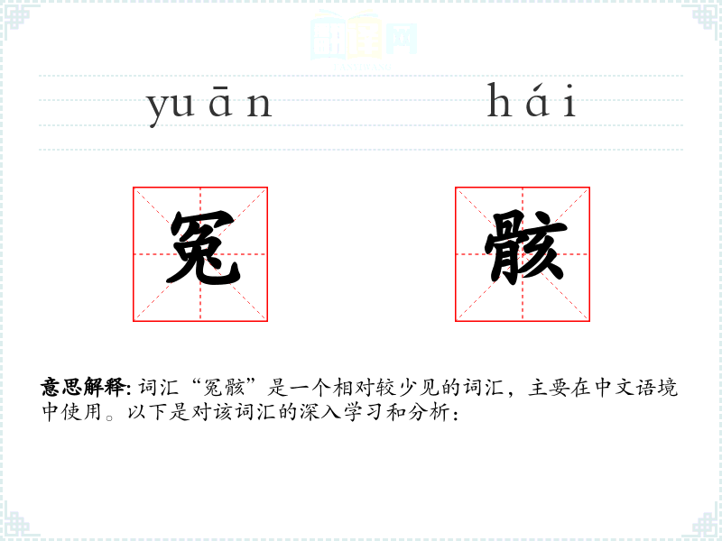 词汇“冤骸”是一个相对较少见的词汇,主要在中文语境中使用。以下是对该词汇的深入学*和分析: