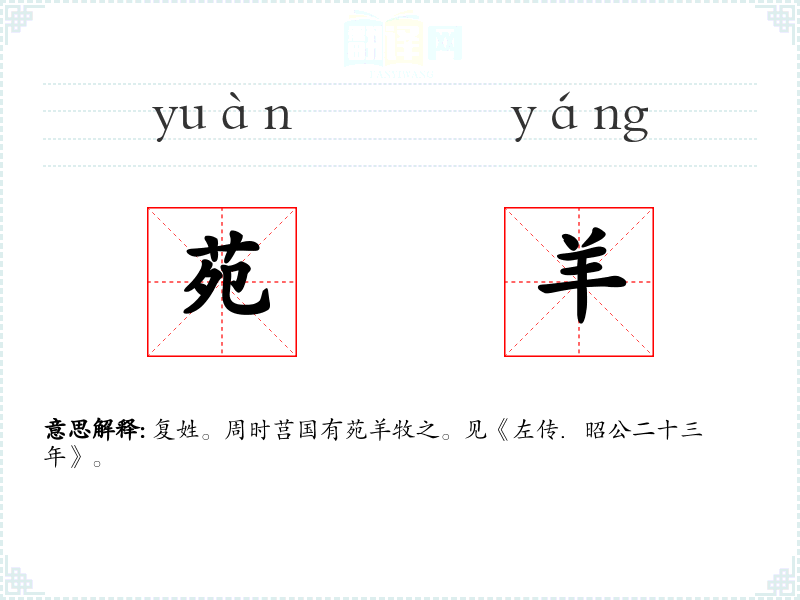 复姓。周时莒国有苑羊牧之。见《左传.昭公二十三年》。