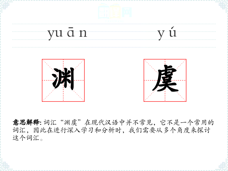 词汇“渊虞”在现代汉语中并不常见,它不是一个常用的词汇,因此在进行深入学习和分析时,我们需要从多个角度来探讨这个词汇。