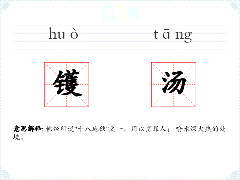 佛经所说"十八地狱"之一。用以烹罪人; 喻