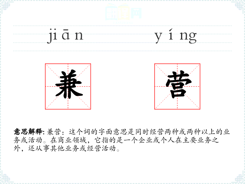 “兼营”这个词源于汉语,由“兼”和“营”两个字组成。在古代汉语中,“兼”意味着同时做两件事,而“营”则指经营或管理。随着商业活动的发展,这个词逐渐被用来描述同时进行多种经营活动的情况。